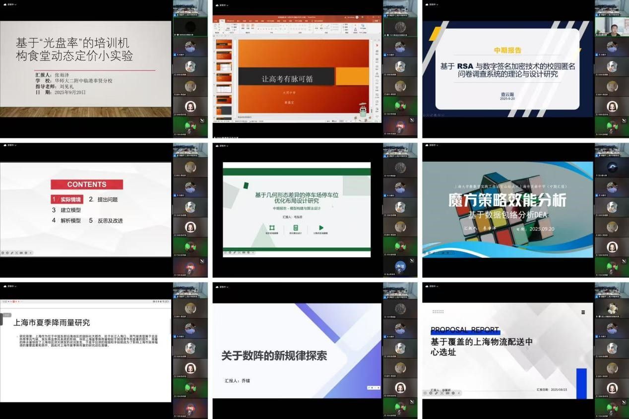 下午13:00,来自格致、宝山、新中、中原四个实践点的37名学生代表进行了课题汇报。汇报内容精彩纷呈,展现出同学们扎实的探究能力和创新意识。导师组对每项报告作了细致点评,为同学们前期的研究工作提供了专业指导与总结,也为后续创新实践活动的深入开展奠定了坚实基础。本次创新活动让参与的学生深切感受到了数学的精彩与魅力,增强了学生应用数学解决实际问题的能力,培养了理科基础的创新思维。
