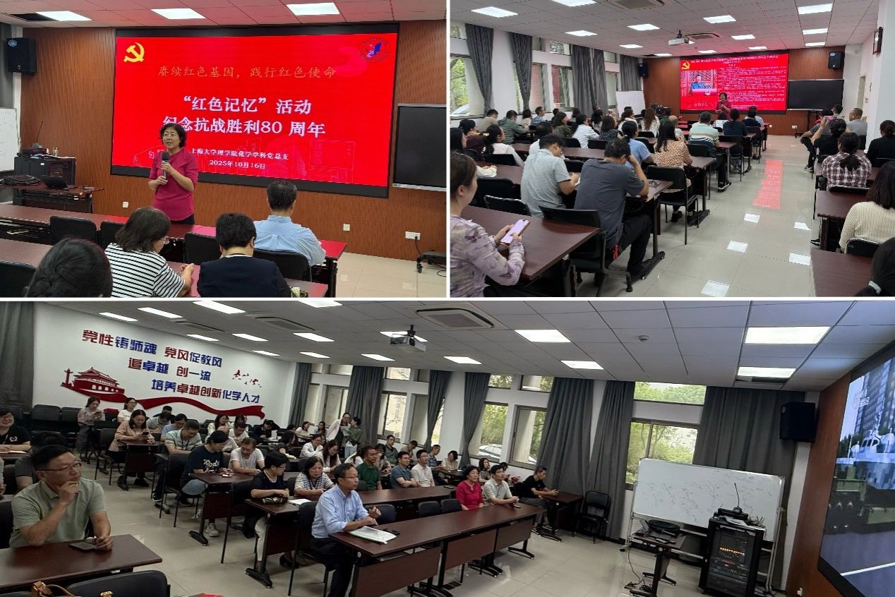 为深刻领会和准确把握习近平总书记在纪念中国人民抗日战争暨世界反法西斯战争胜利80周年大会上的重要讲话的丰富内涵与核心要义,2025年10月16日下午,化学学科党总支于宝山校区HA102组织召开“红色记忆”主题学习活动,隆重纪念中国人民抗日战争暨世界反法西斯战争胜利80周年。化学学科党总支书记邢菲菲主持活动,60余名党员及入党积极分子参加了学习。