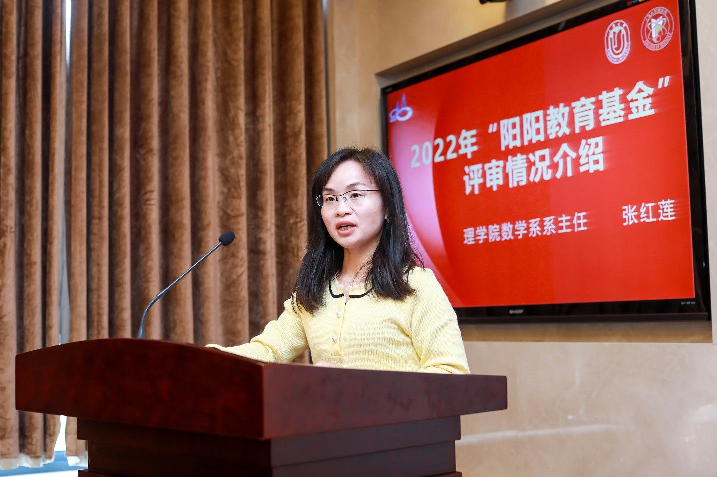 紧接着,数学系系主任张红莲介绍了2022年“阳阳教育基金”评审情况。“阳阳教育基金”设本科生、研究生、教师三大类,每年评奖一次。本基金的评审始终坚持培养和激励数学学科师生“严谨、求实、创新”的优良传统和追求真理、自由探索科学研究的态度,成为数学领域的拔尖人才;激励青年教师坚持立德树人、勇于担当的积极作为,弘扬良好师风师德、积极奉献的主旋律。